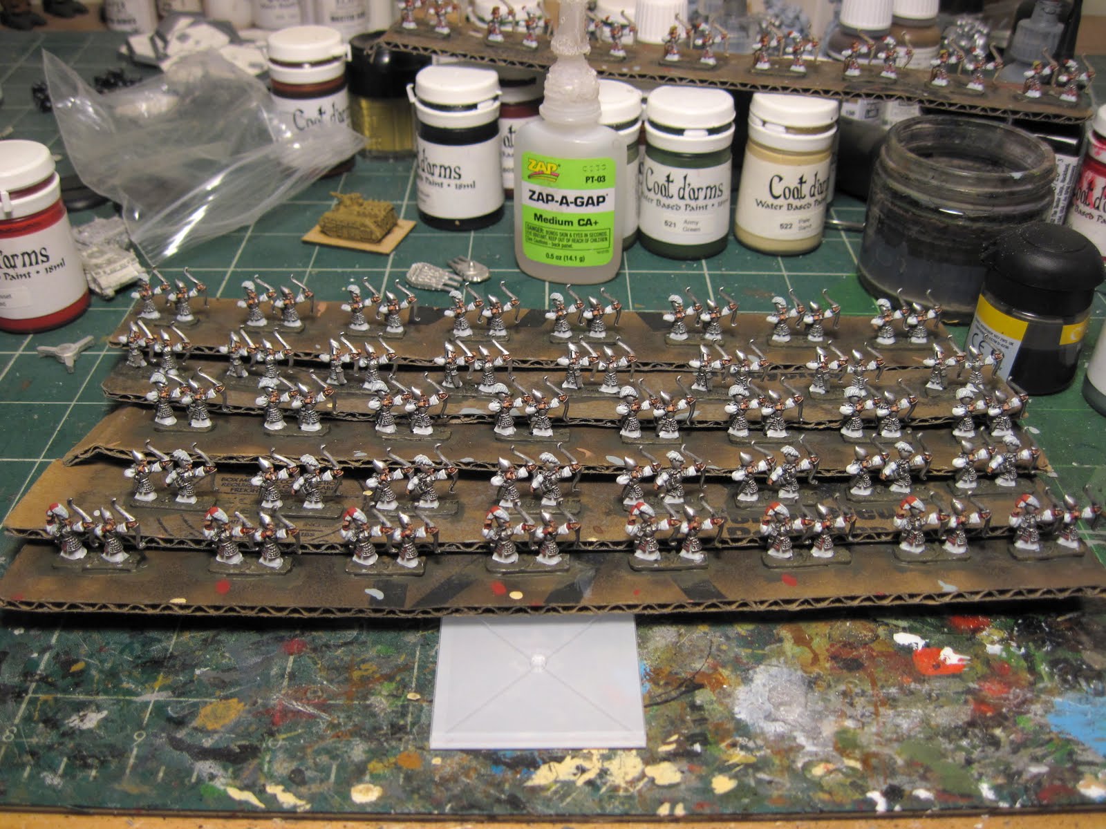 Very nice! It takes Iron Discipline to batch paint Warmaster figures in large numbers.