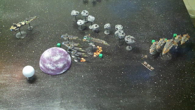 Ouch lol forgot about the darn fighters getting beefed ::). Ok what is the range between the Mars and the Exo (assuming a 10cm forward movement) and the Carnage 1? Also distance between the Lunars, Retribution, and Dauntless and Carnage 2. Also what is the distance between the Lunars and the blastmarkers in front of the Retribution? I think thats it... :D